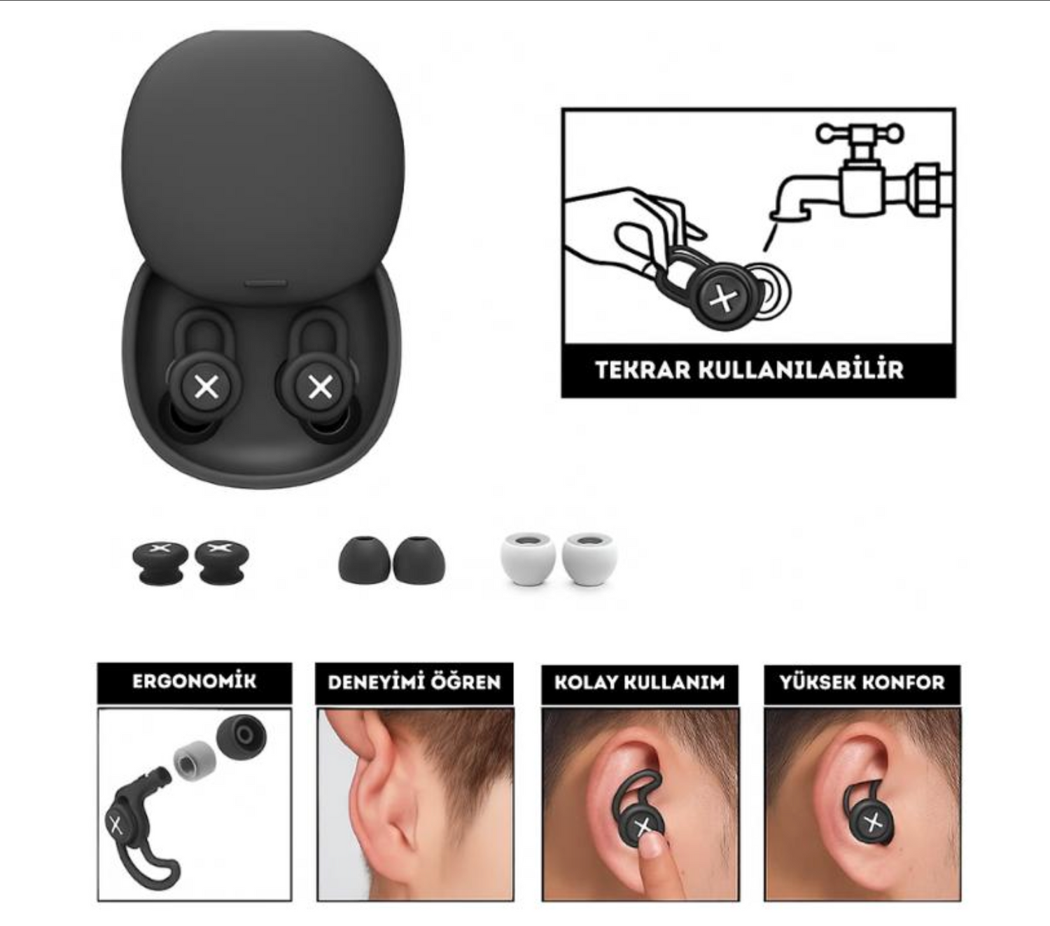Ergonomik silikon yapısı, kulağa tam oturarak sesi pasif olarak filtreler ve konforlu bir kullanım sağlar.